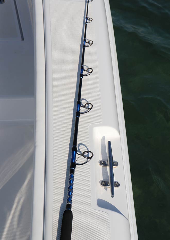 The Sailfish Spin rod has been the #1 selling spinning rod in our lineup of rods for almost 30 years now. We have added this Diamond Series variant with higher-quality parts for those who want the best of the best. This rod goes on pretty much every boat we set up. Excellent heavy-duty offshore spinning rod for your bigger reels. I use the Shimano Saragossa 10,000 on these rods for Sailfish, Mahi, Blackfin, and even bottom fishing. This is a true workhorse spinning rod made to tackle the strongest fish. If you are down n dirty on a bruiser 30# Mahi this is the rod you want in your hands without a doubt. You can put some heat on a stubborn fish with this rod. Made with the finest Fuji guides to last you a lifetime of fishing without fail!!
